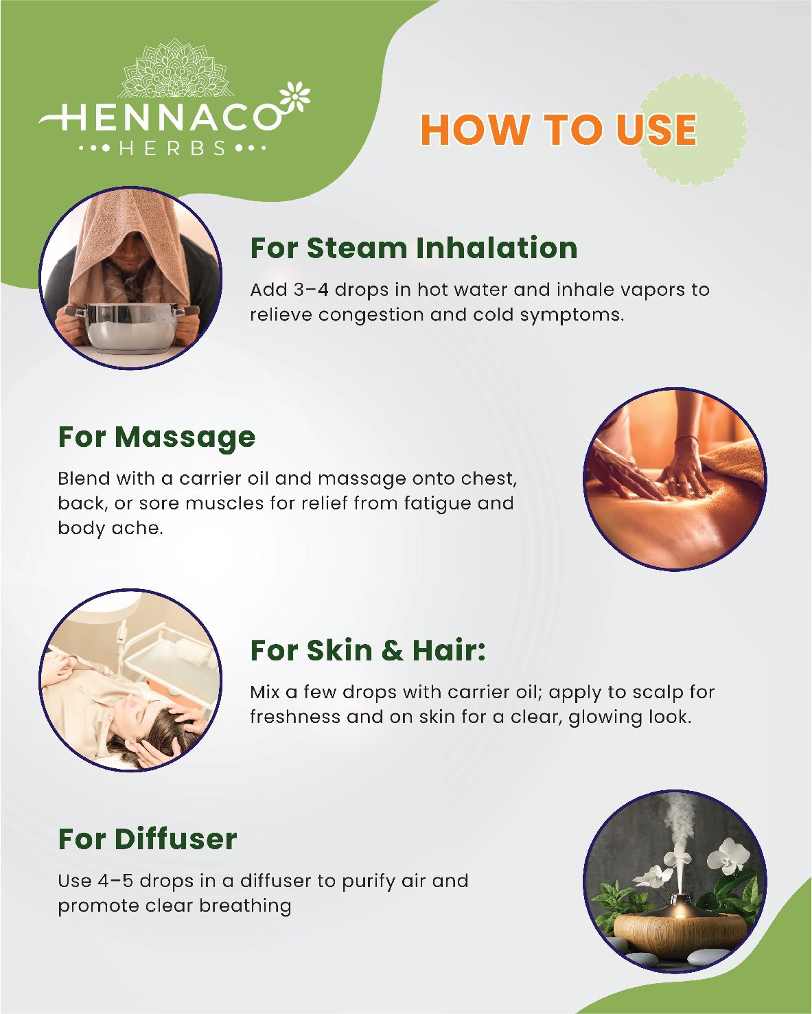 Add a few drops to a diffuser, steamer, or mix with a carrier oil for massage or skincare.