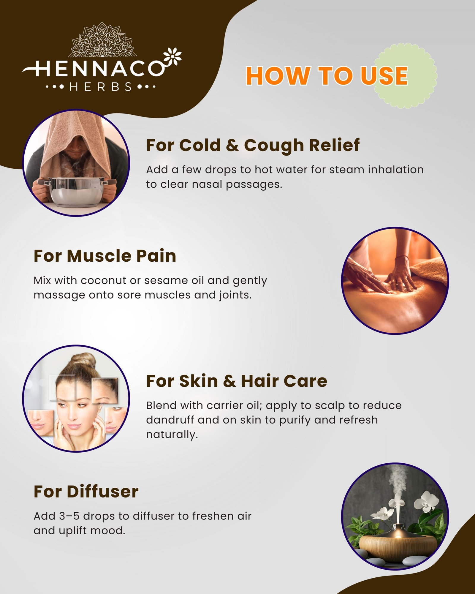 Add a few drops to your diffuser or mix with a carrier oil for massage and skincare.