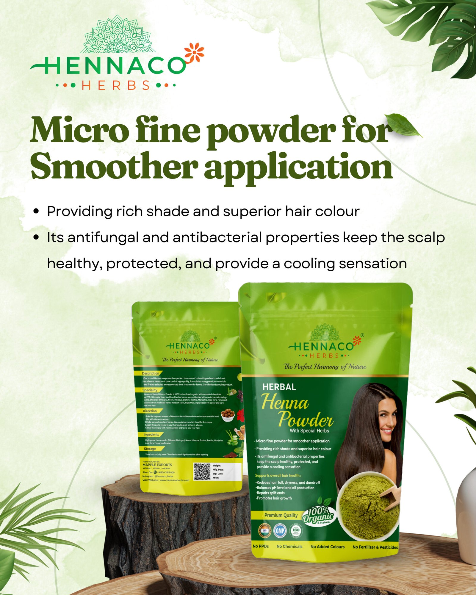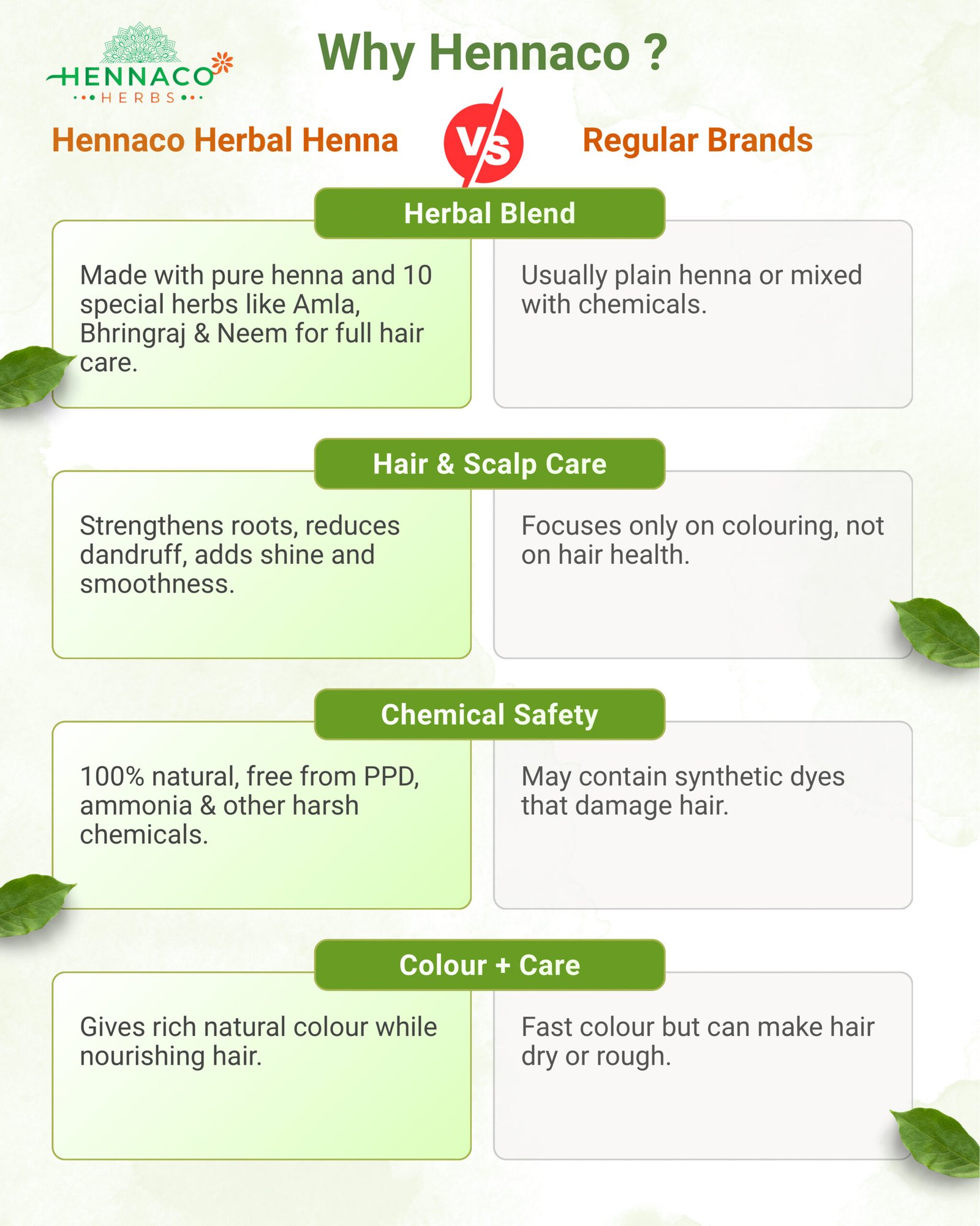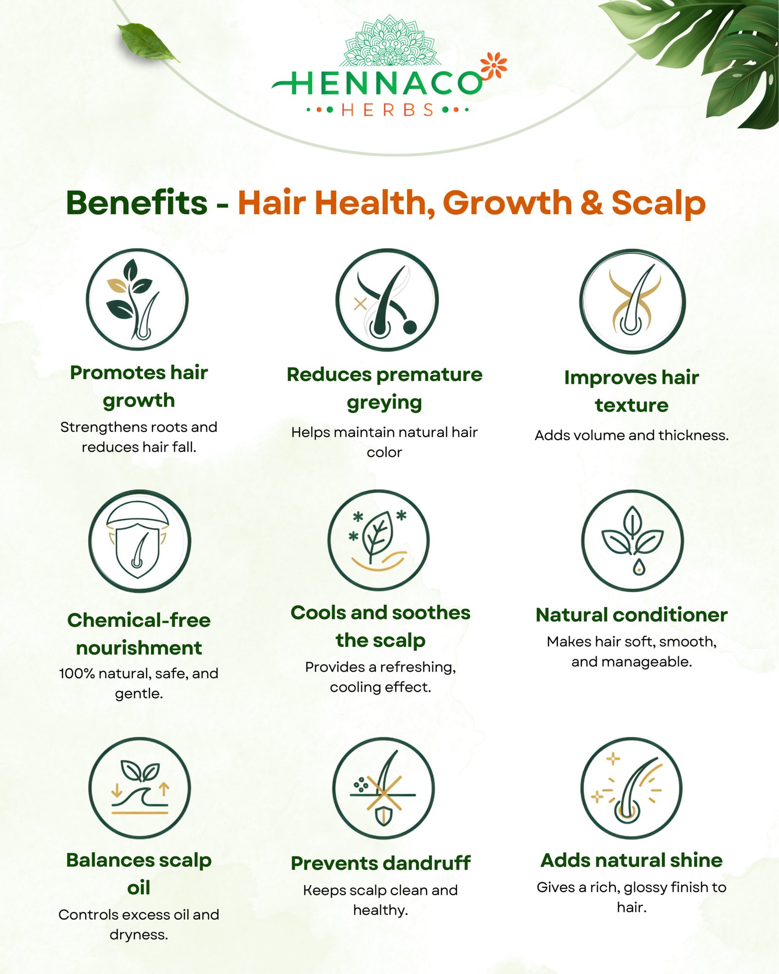 100% NATURAL AND PURE – High Grade Herbal Henna Blended with nature’s best: Amla, Shikakai, Bhringraj, Neem, Hibiscus, Brahmi, Reetha, Manjistha, Aloe Vera & Fenugreek Powder — for healthy, shiny, naturally colored hair. 💚✨